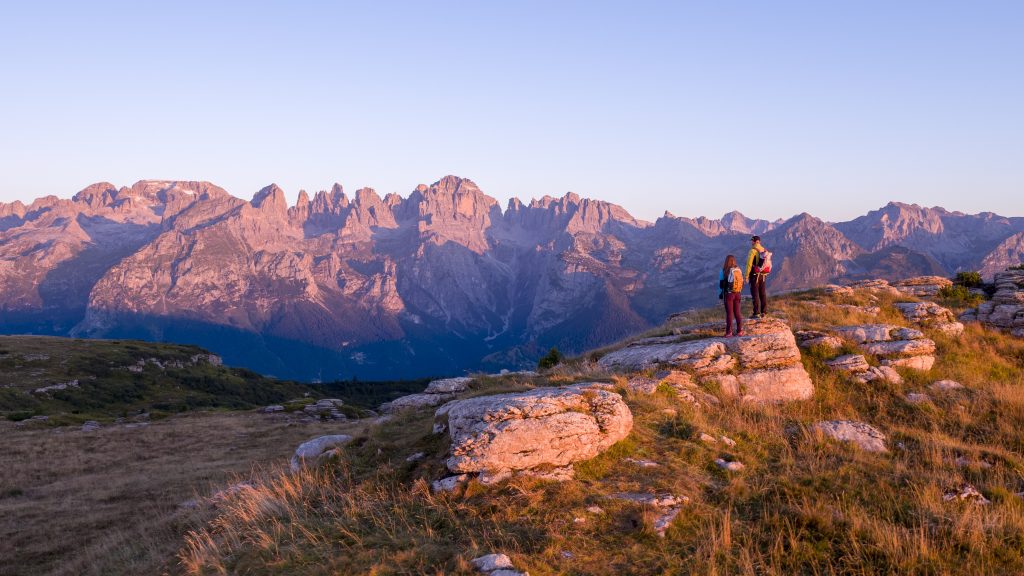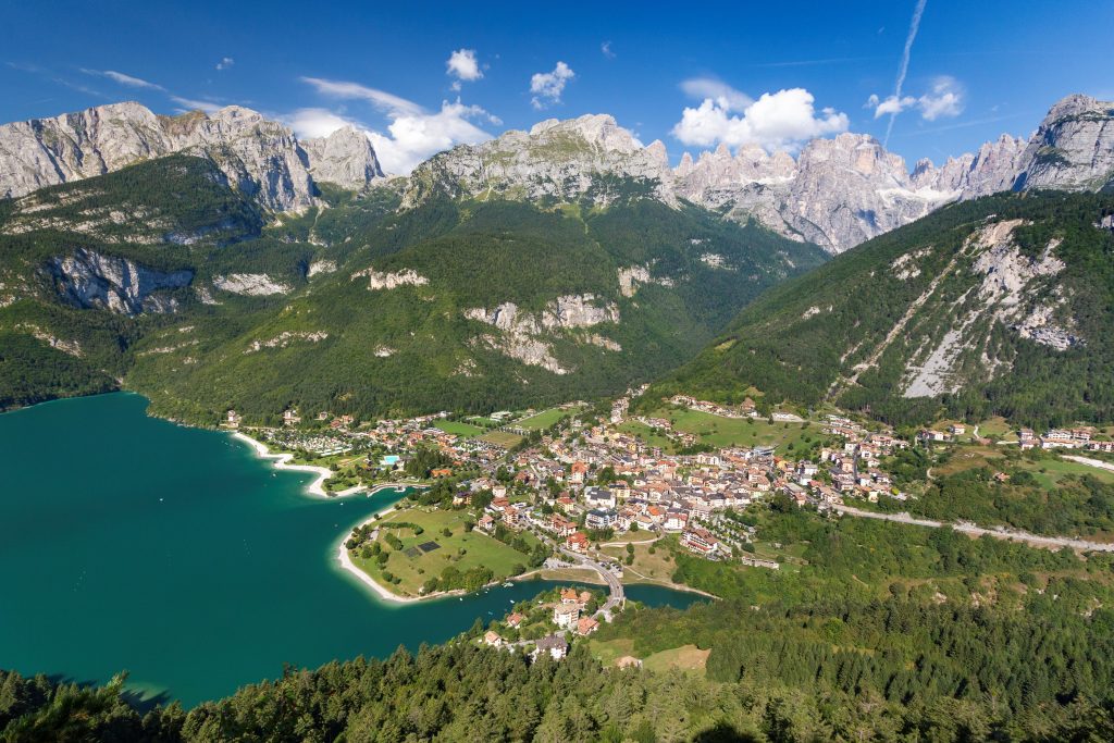 Le Dolomiti di Brenta che si specchiano nelle acque cristalline dei laghi di Molveno e Nembia, la Paganella che regala la vista più bella del Trentino a trekkers e sciatori, uno dei Borghi più belli d’Italia e ancora il Parco del Respiro, l’area faunistica, casa dei grandi carnivori delle Alpi e i caratteristici vigneti della Piana Rotaliana.